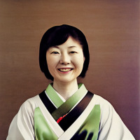 color photograph portrait of a Japanese lady, smiling